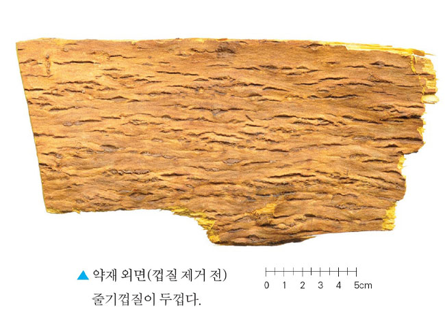 | 이명 | 벽목(檗木), 벽피(檗皮), 황벽(黃檗), 백피(柏皮) |