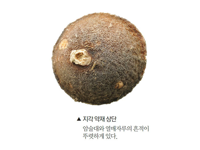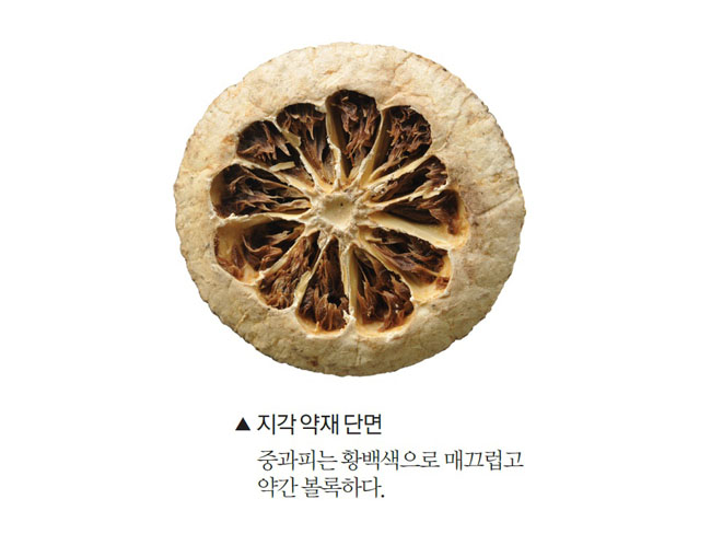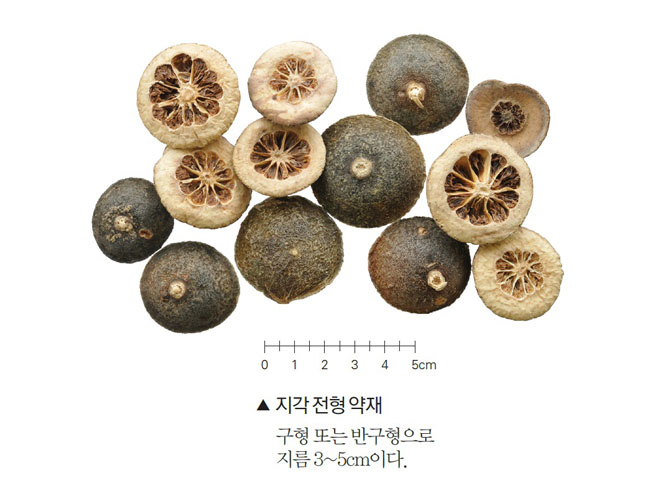 | 기원 | 광귤나무 Citrus aurantium Linne, 하귤 Citrus natsudaidai Hayata 또는 그 재배변종 (운향과 Rutaceae)의 덜 익은 열매 |