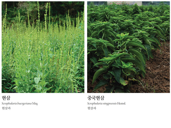학명 Scrophularia buergeriana Miquel (현삼), Scrophularia ningpoensis Hemsley (중국현삼)