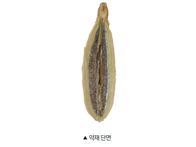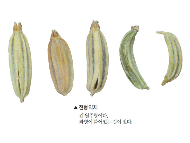 | 기원 | 회향 Foeniculum vulgare Miller (산형과 Umbelliferae)의 잘 익은 열매 |