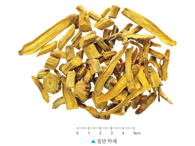 | 약성/귀경 | 쓰고(苦) 차갑다(寒). 폐(肺), 담(膽), 위(胃), 대장경(大腸經)에 작용한다. |