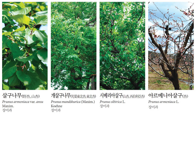 | 학명 | Prunus armeniaca Linné var. ansu Maximowicz (살구나무), Prunus mandshurica Koehne var. glabra Nakai (개살구나무), Prunus sibirica Linné (시베리아살구), Prunus armeniaca Linné (아르메니아살구) |