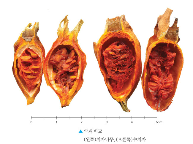 | 이명 | 목단(木丹), 선지(鮮支), 치자(巵子), 소치자(小巵子), 산치자(山梔子), 황치자(黃梔子) |