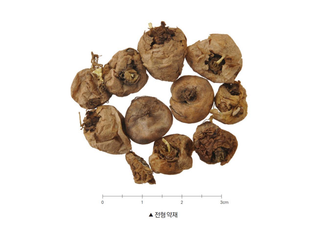기원 들현호색 Corydalis ternata Nakai 또는 연호색(延胡索) Corydalis yanhusuo W.T.Wang (양귀비과 Papaveraceae)의 덩이줄기