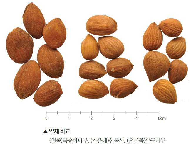 | 기원 | 복숭아나무 Prunus persica Batsch 또는 산복사 Prunus davidiana Franchet (장미과 Rosaceae)의 잘 익은 씨 |