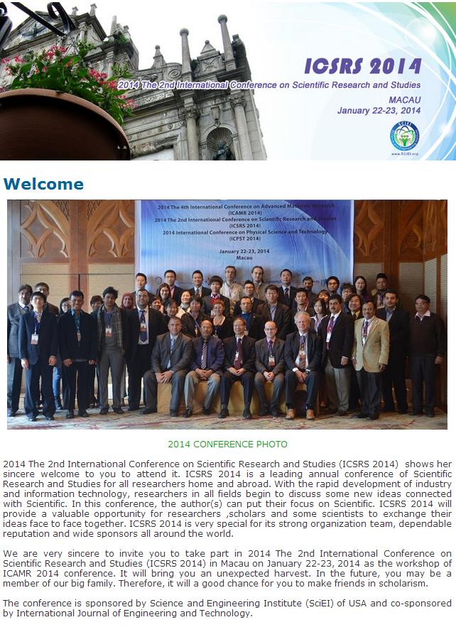2014 The 2nd International Conference on Scientific Research and Studies (ICSRS 2014)