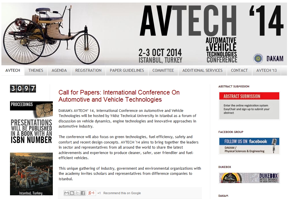 AVTECH '14 / Automotive and Vehicle Technologies Conference