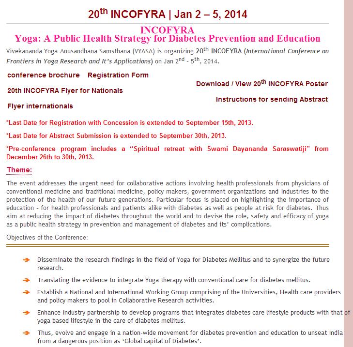 홈페이지 http://svyasa.org/news-events/20th-incofyra-dec-19-22-2013/