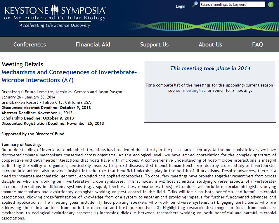 Keystone Symposia: Mechanisms and Consequences of Invertebrate-Microbe Interactions