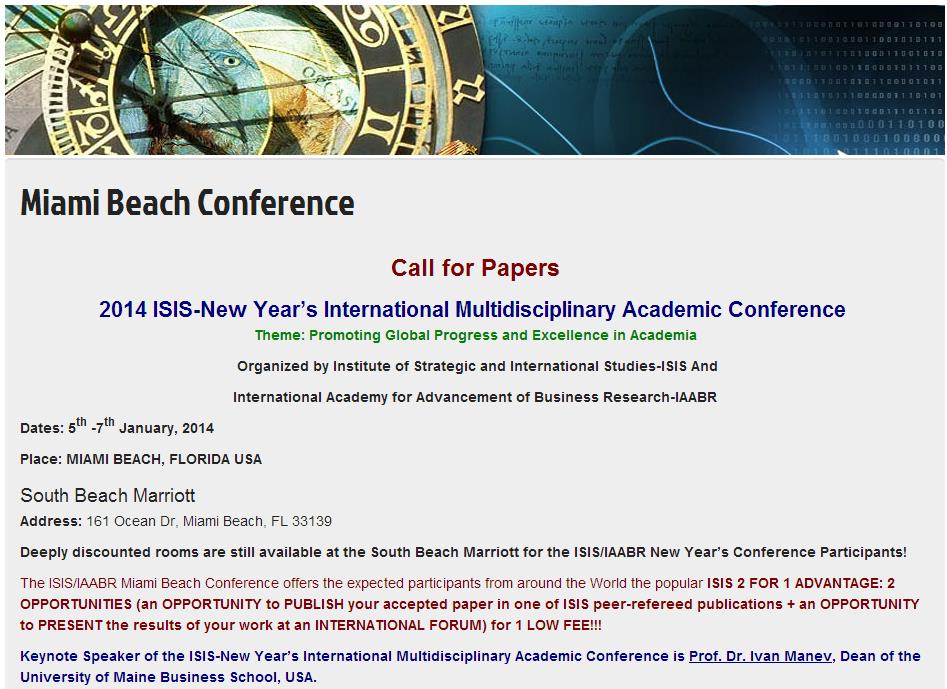 2014 ISIS - MIAMI BEACH INTERNATIONAL MULTIDISCIPLINARY ACADEMIC CONFERENCE - Promoting Global Progress and Excellence in Academia