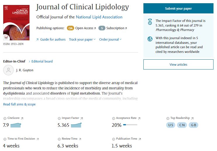 The Journal of Clinical Lipidology is published to support the diverse array of medical professionals who work to reduce the incidence of morbidity and mortality from dyslipidemia and associated disorders of lipid metabolism. The Journal's readership encompasses a broad cross-section of the medical community, including cardiologists, endocrinologists, and primary care physicians, as well as those involved in the treatment of such disorders as diabetes, hypertension, and obesity. The Journal also addresses allied health professionals who treat the patient base described above, such as pharmacists, nurse practitioners and dietitians.